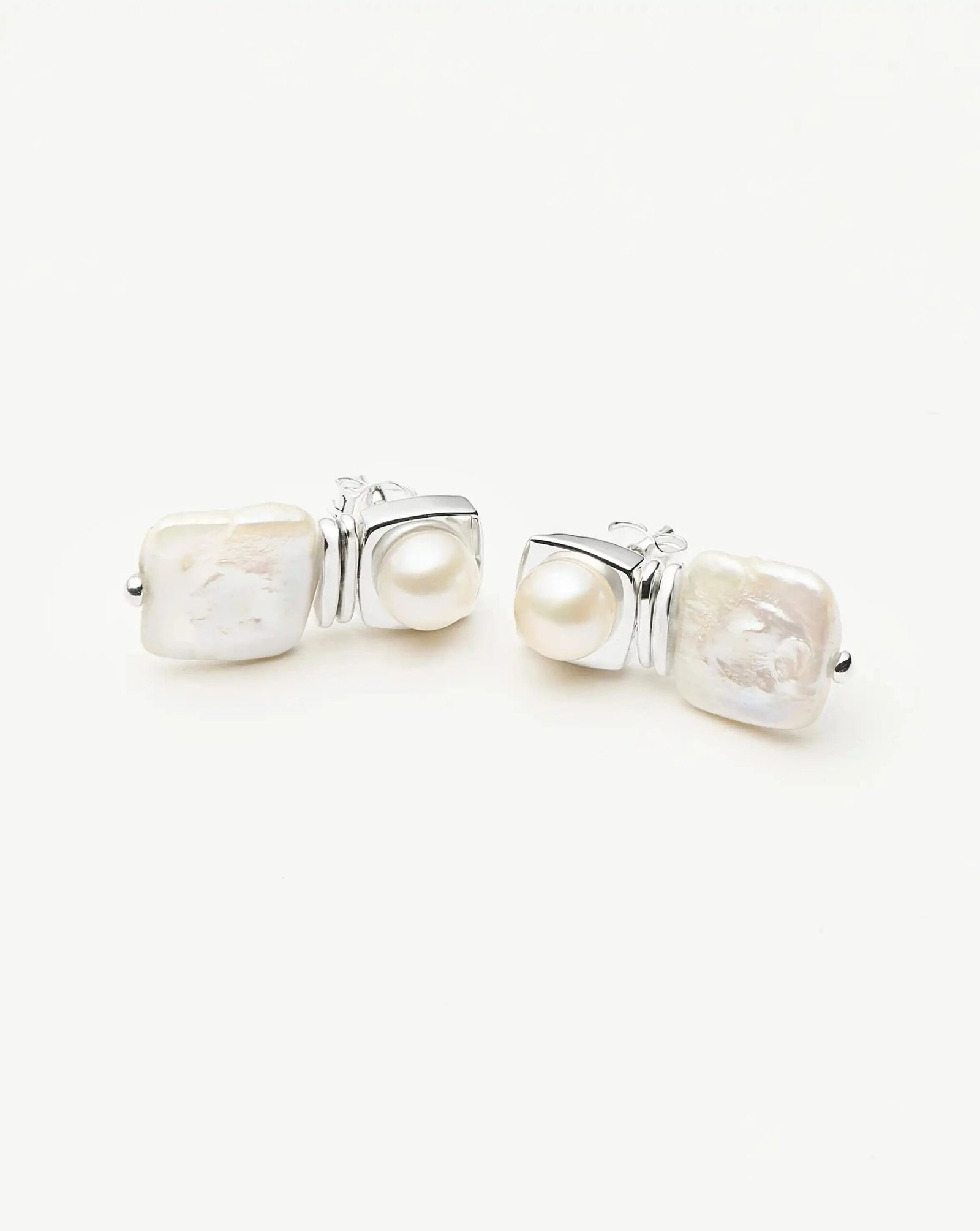 Our best selling Square Pearl Statement Earrings are now available in small. your pearl-fect match. These distinctive silver pearl drop earrings feature a button stud with square pearls. Style with your favourite mini hoops or huggies for an instant ear stack.